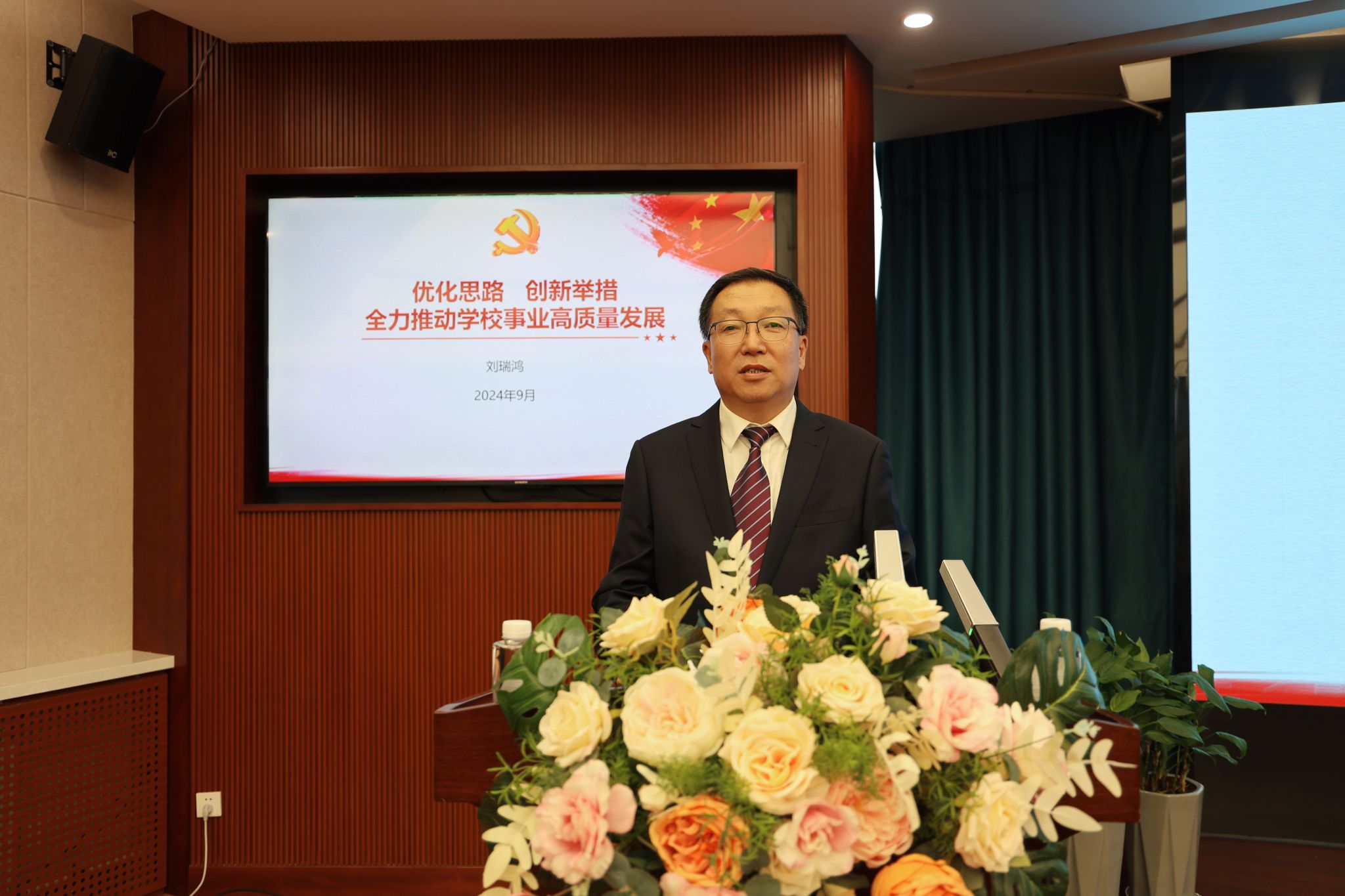 劉瑞鴻以《優(yōu)化思維 創(chuàng)新舉措 全力推動學校事業(yè)高質(zhì)量發(fā)展》為題作了交流發(fā)言。