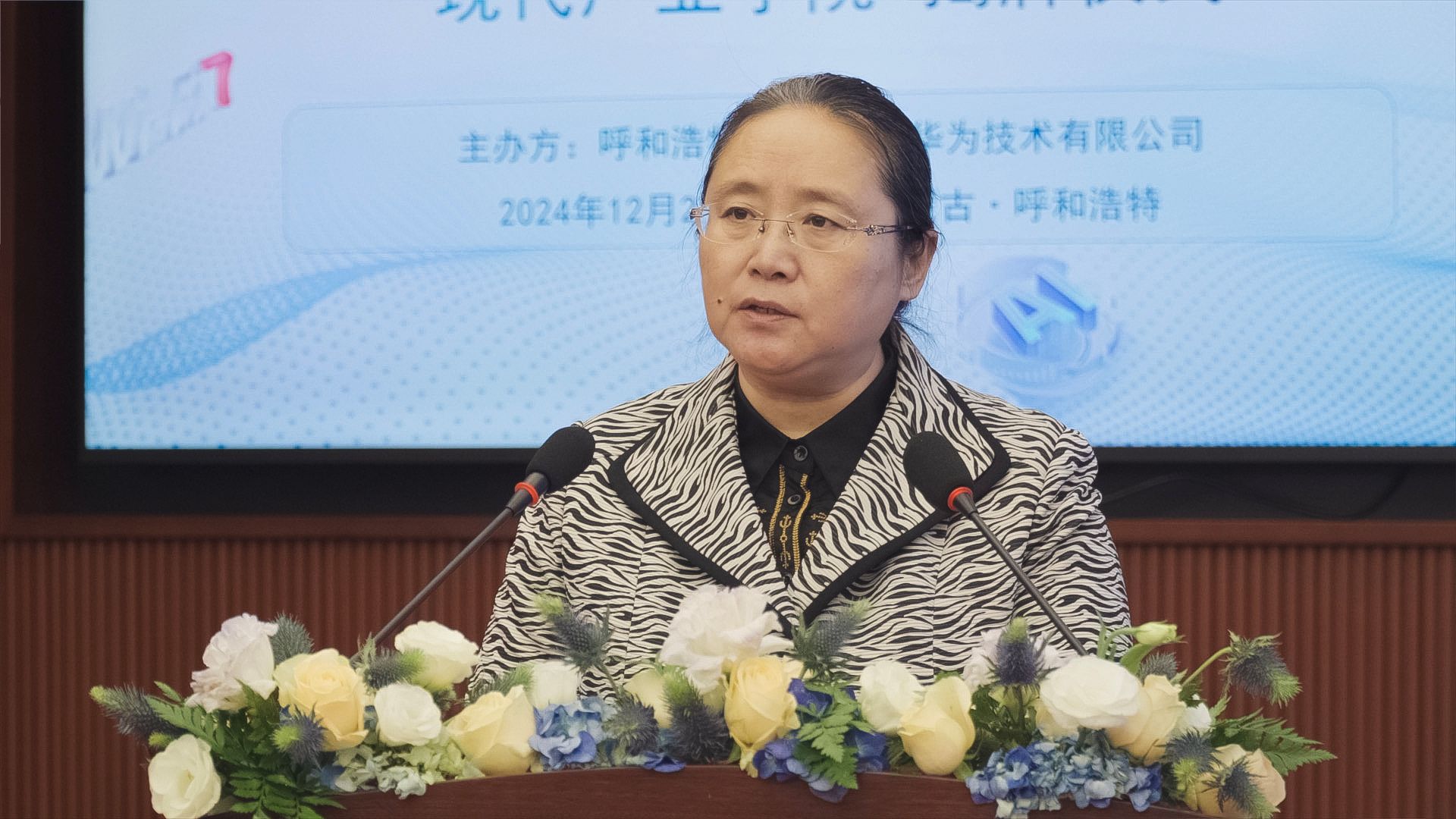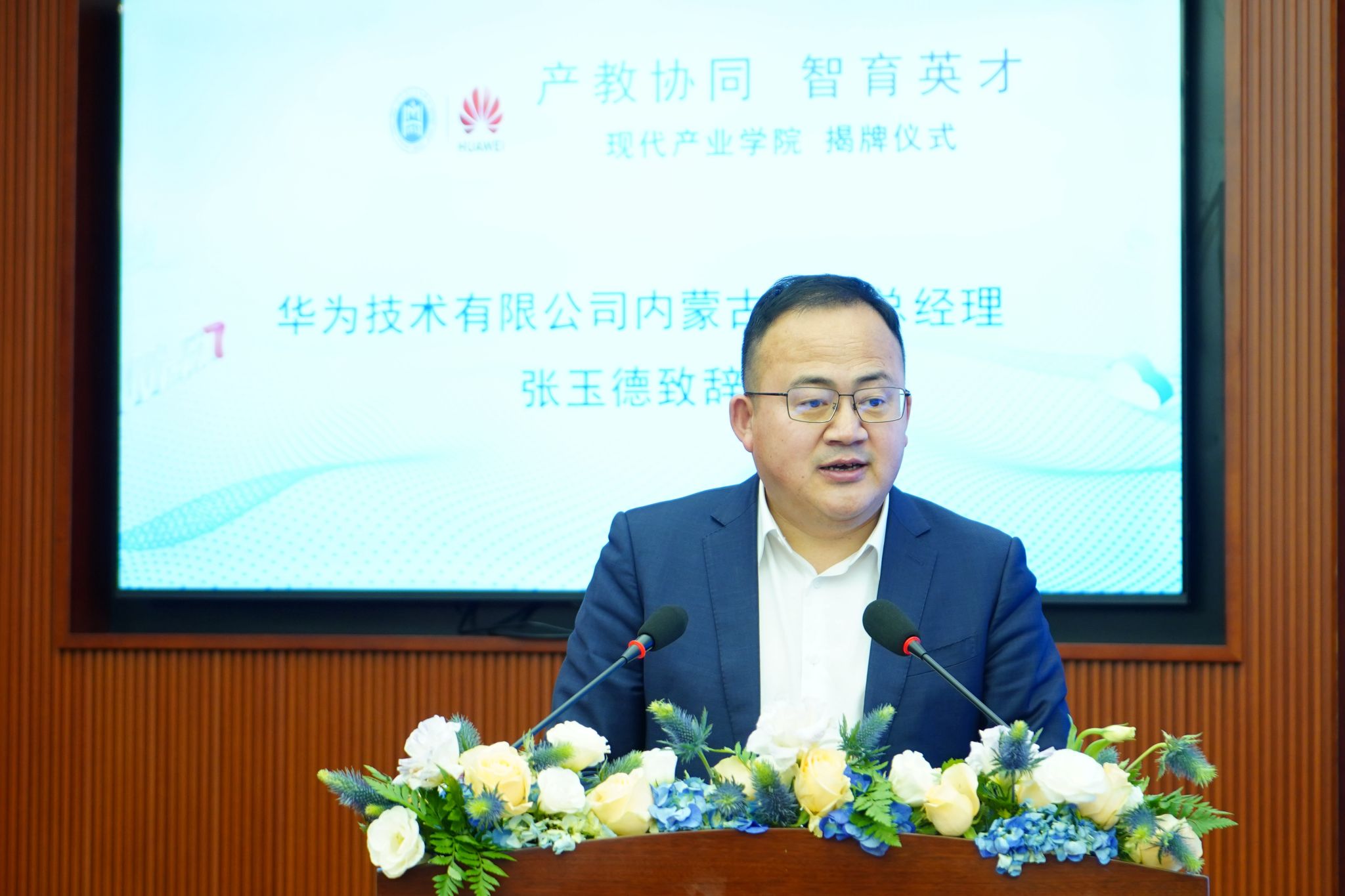 額爾敦布和在儀式上致辭。他簡要介紹了學校的辦學歷史,表示學校高度重視現代產業學院的建設工作。他指出,今天的揭牌儀式標志著我校與華為在產教深度融合、協同育人方面邁出了堅實的一步,也是貫徹新發展理念、對標教育部現代產業學院建設標準的有力實踐。他希望,現代產業學院在人才培養的道路上不斷前行,進一步拓展合作領域,深化合作層次,不僅在技術研發、成果轉化等方面加強協同創新,更要在國際交流與合作中共同探索新機遇,助推學院提升國際影響力。